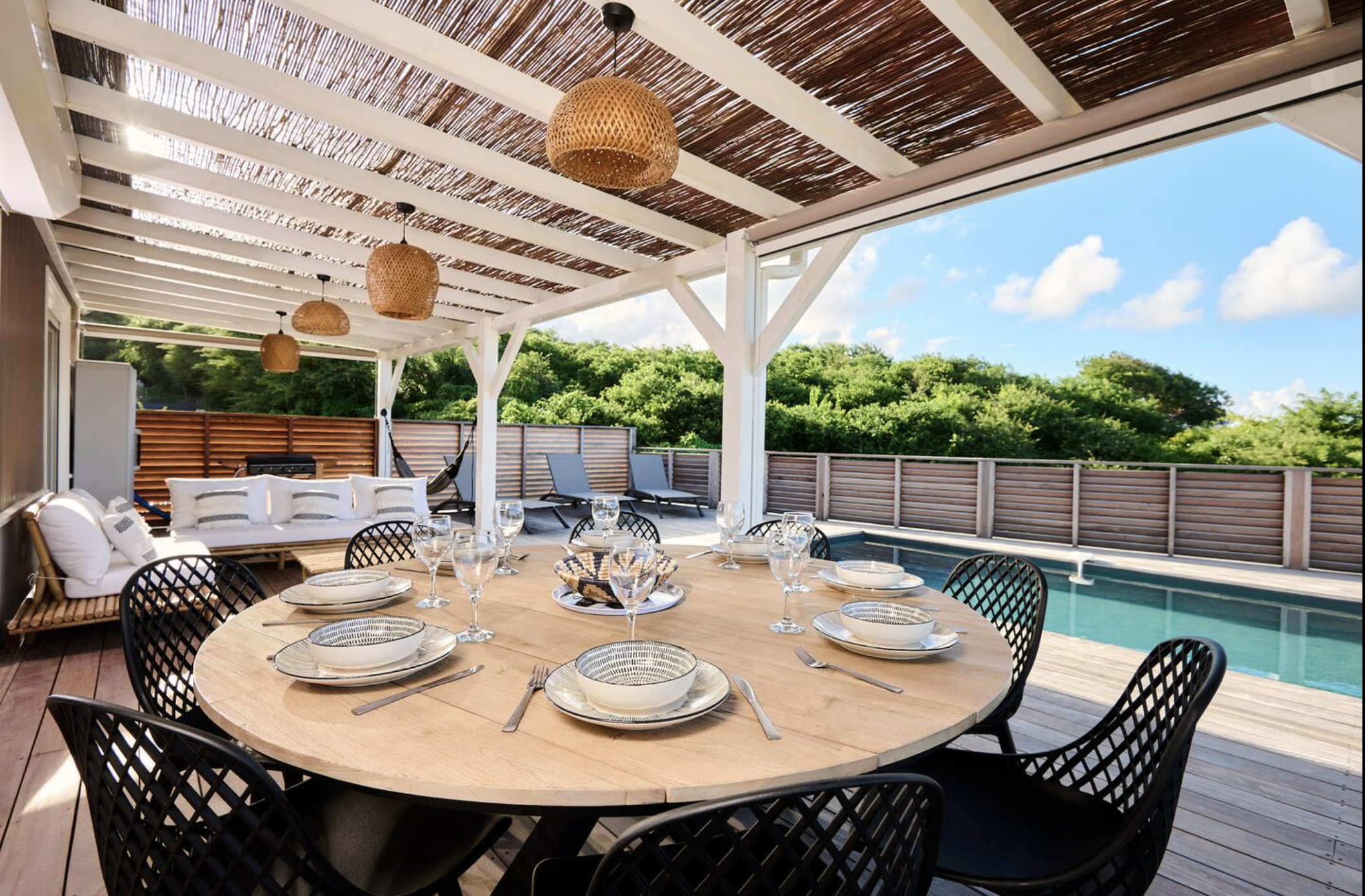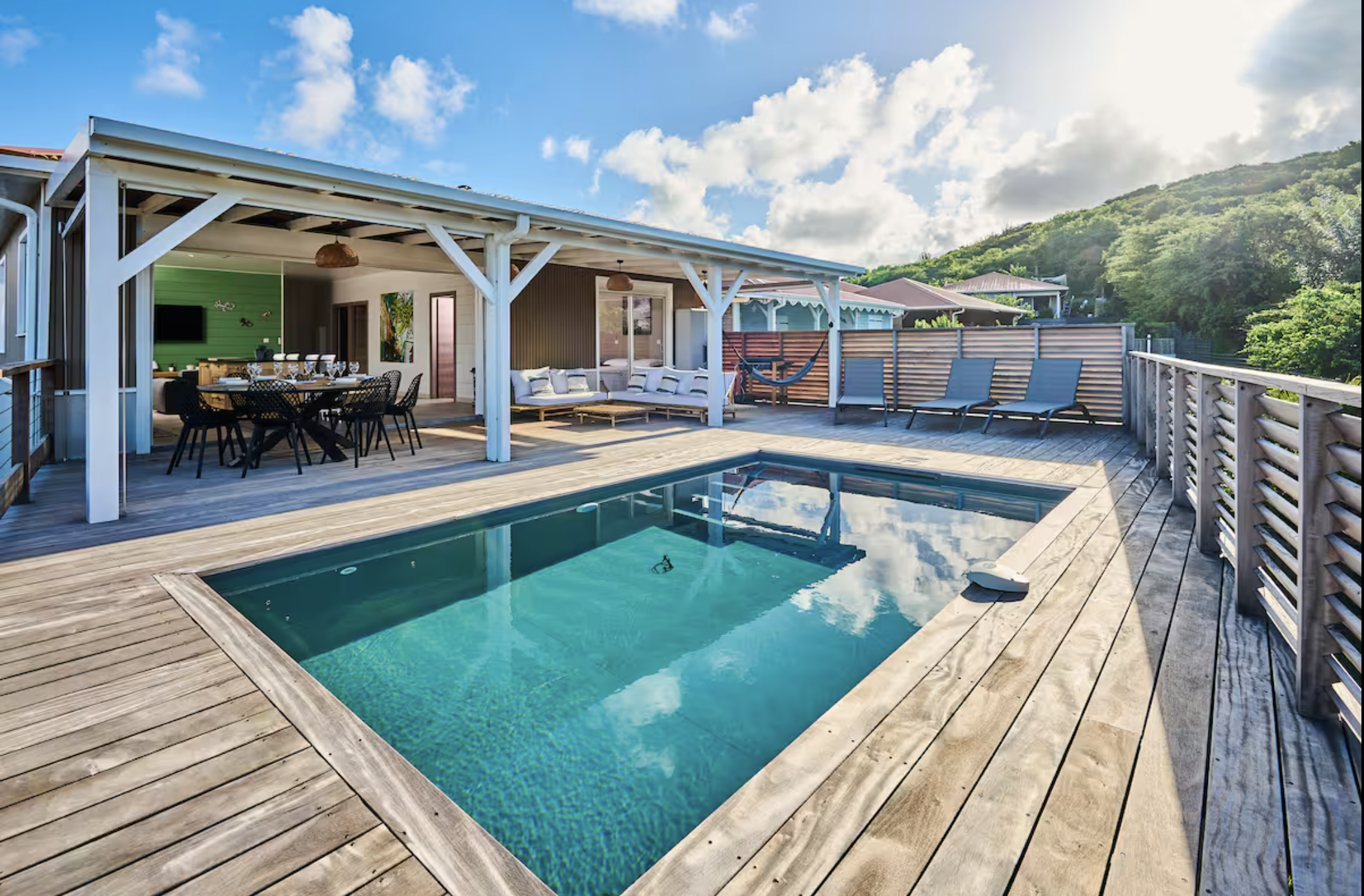 - Une terrasse conviviale avec piscine privée, parfaite pour se détendre après la plage