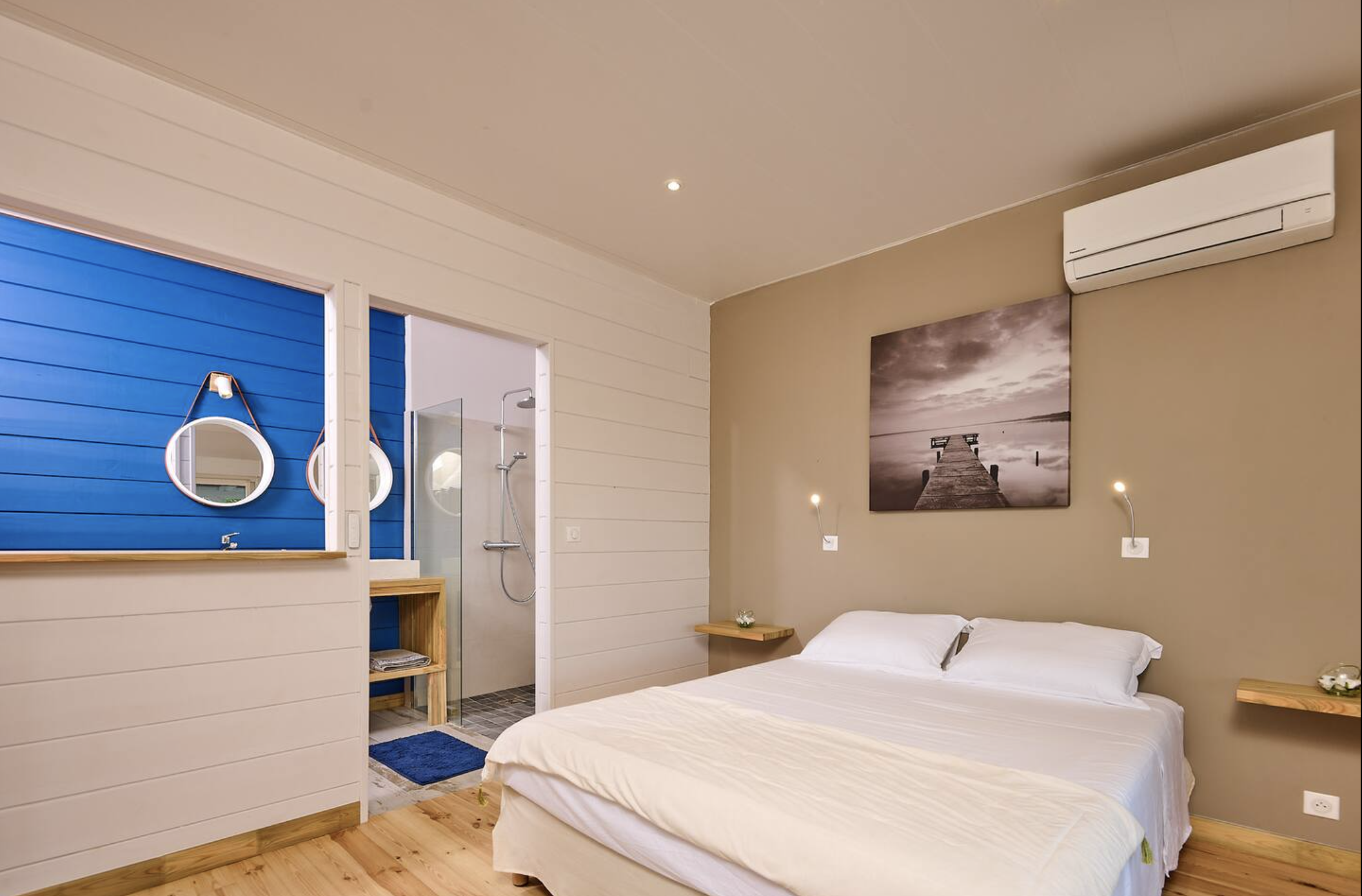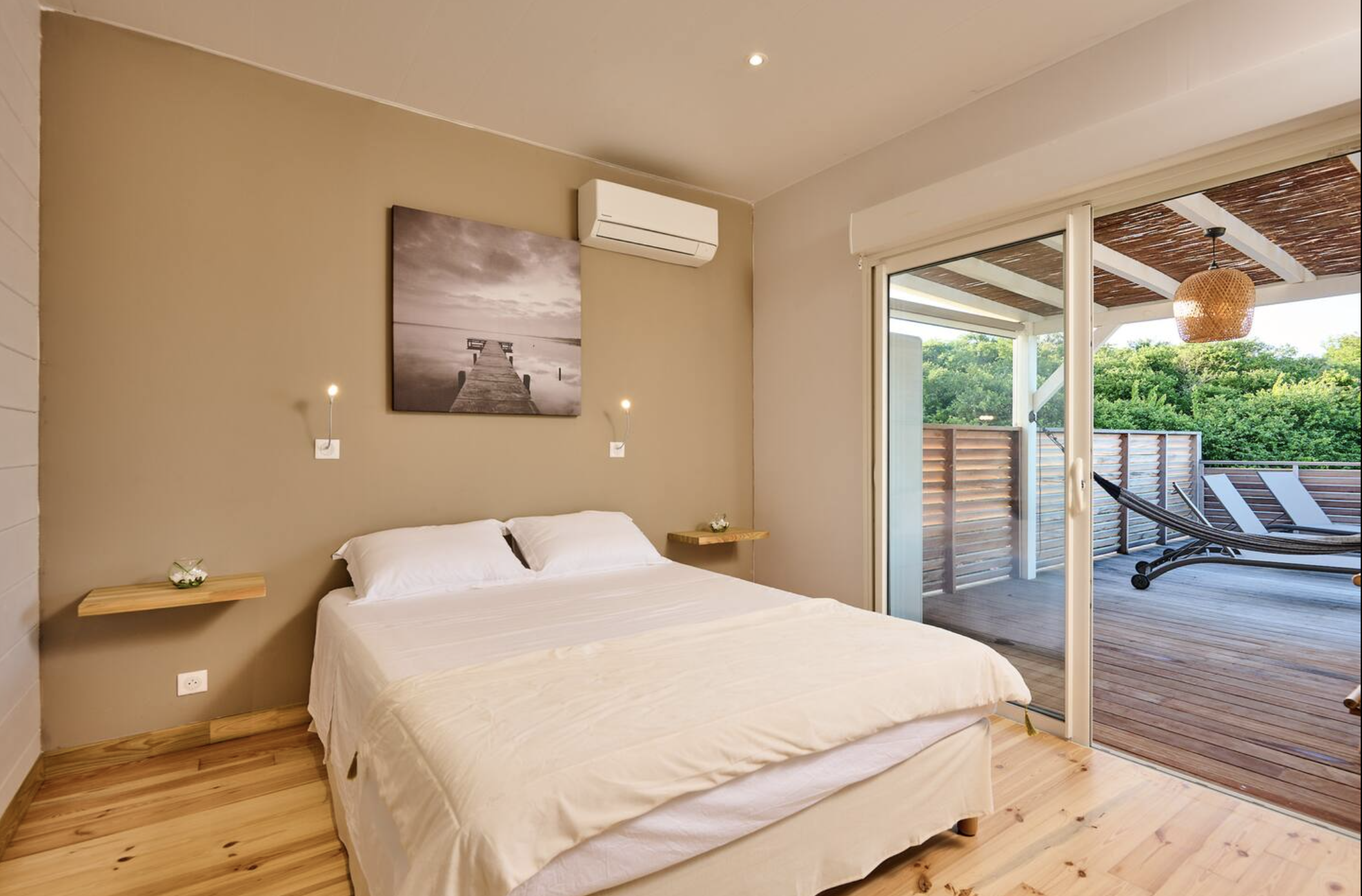 - 3 chambres avec lits doubles, dont une superbe suite parentale avec salle de bain privée et accès direct à la terrasse